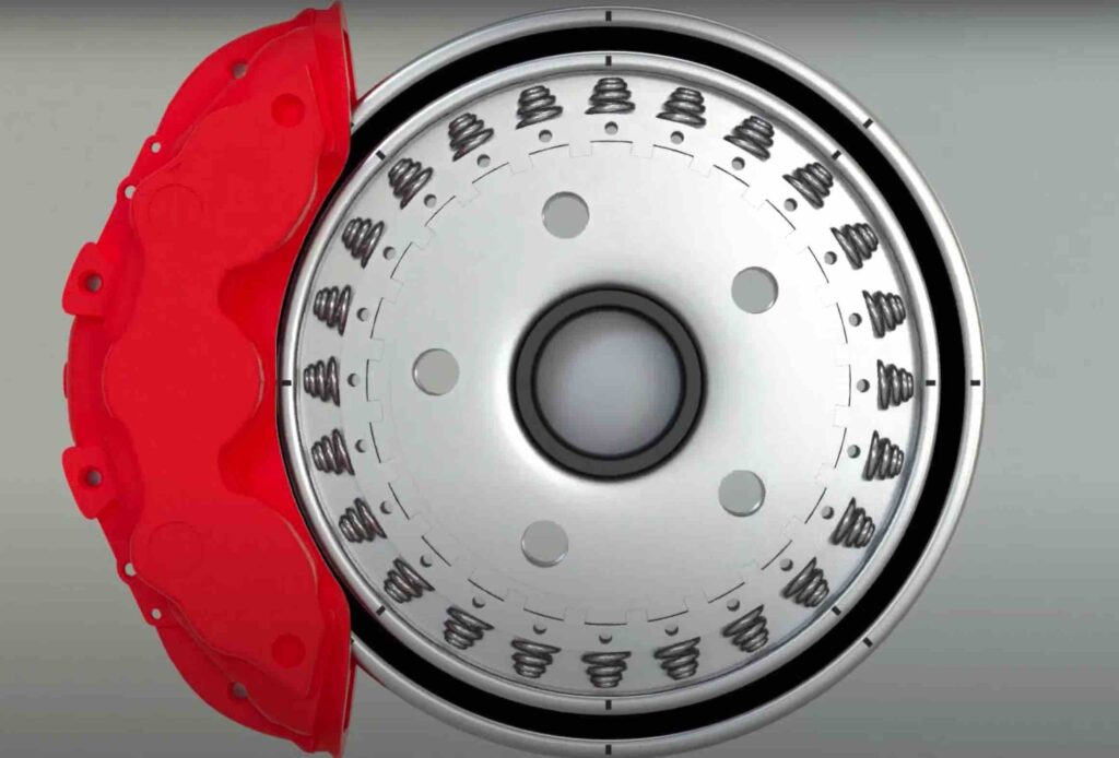 Braking is achieved without conventional brake pads and without traditional “pad-to-disc” contact.